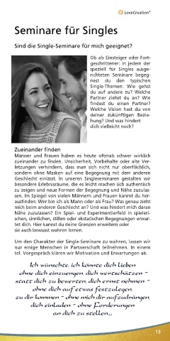 Geschlecht einlässt. In unseren Singleseminaren gestalten wir