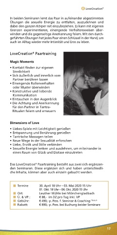 Das LoveCreation Paartraining besteht aus zwei sich ergänzen-